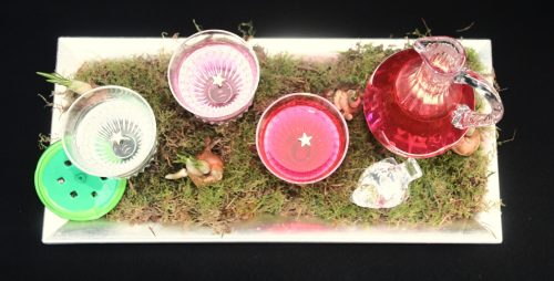 Het mos, de Klavertjes 4 en de witte schaal zijn een geschenk in natura van Monique van der Gaag.